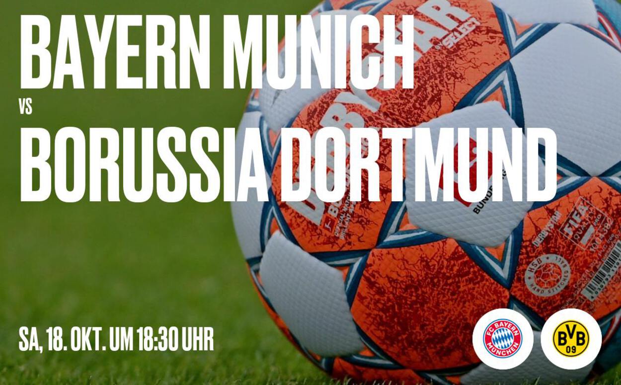 FC Bayern München empfängt Borussia Dortmund am 18.10 um 18:30 Uhr . Live Übertragung in der Hammos alm. Erlebe das Spiel live bei uns mit!