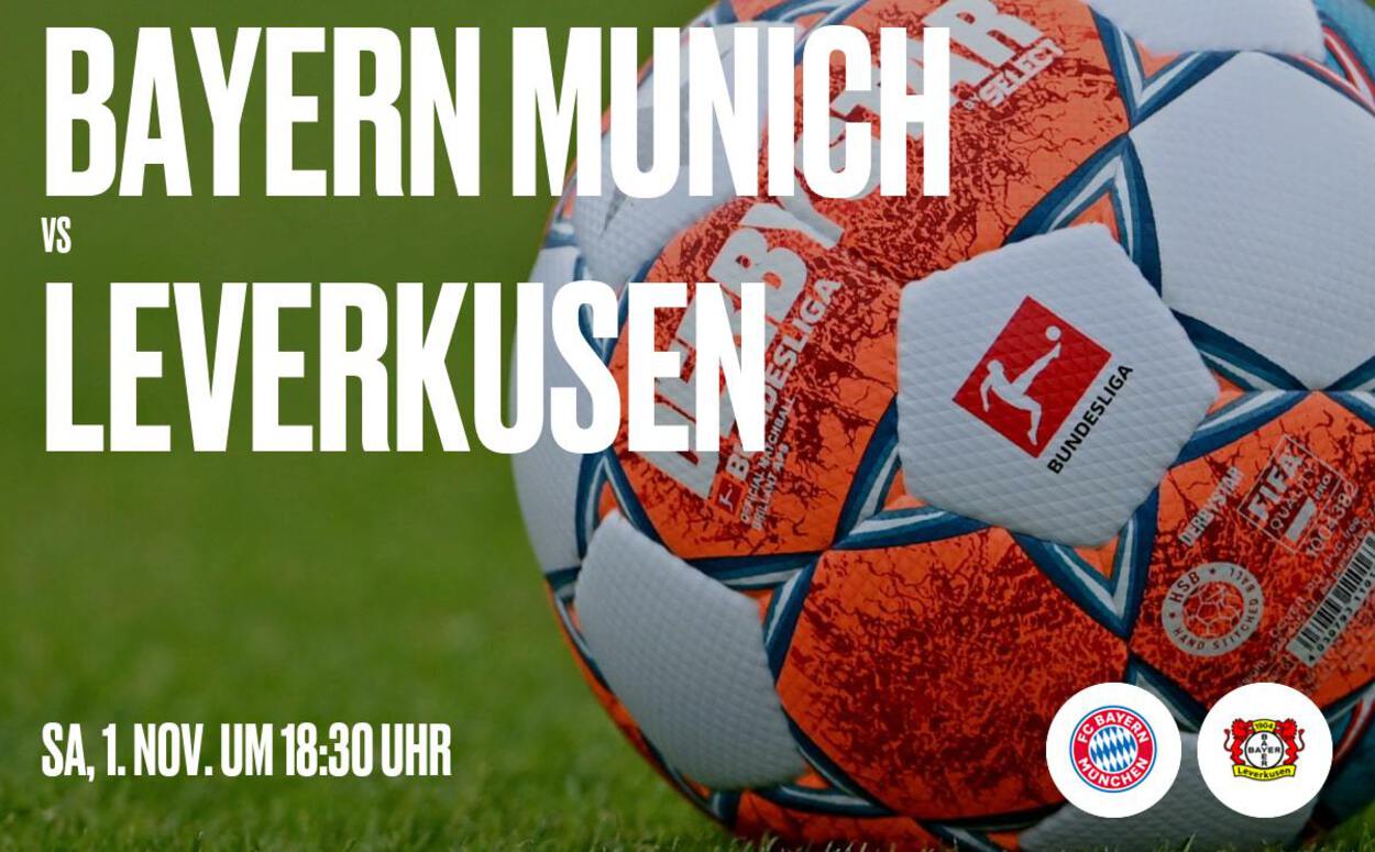 Der FC Bayern München empfängt Bayer 04 Leverkusen am 01.11 um 18:30 Uhr. Live Übertragung in der Hammos alm. Erlebe das Spiel live bei uns mit!