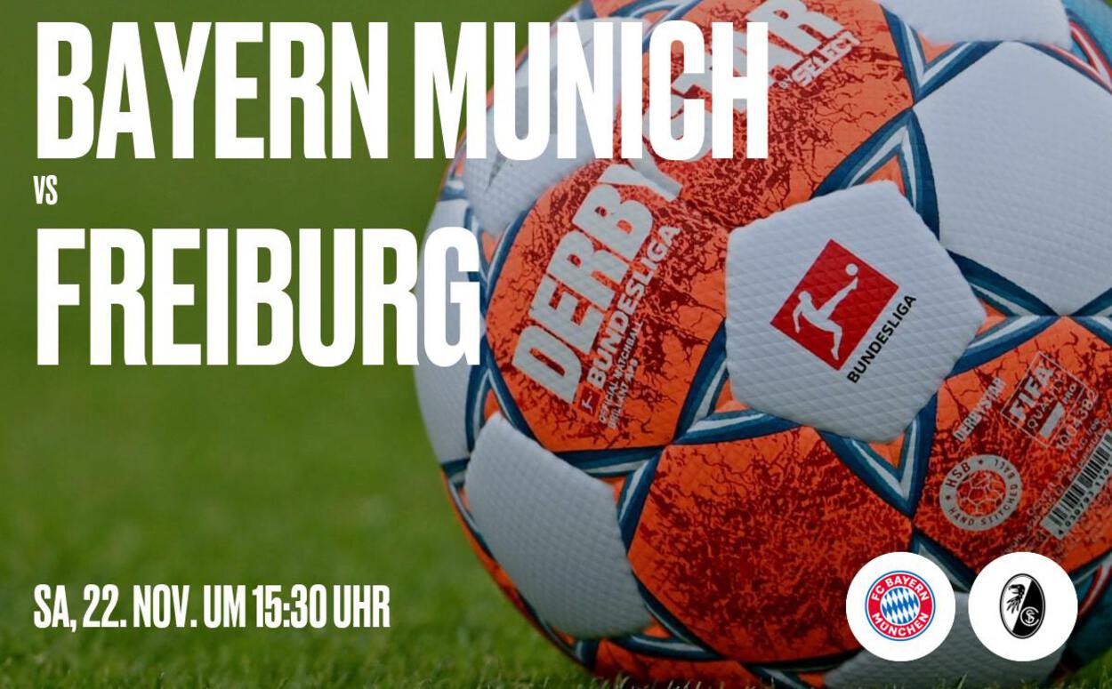 FC Bayern München empfängt SC Freiburg am 22.11 um 15:30 Uhr. Live Übertragung in der Hammos alm. Erlebe das Spiel live bei uns mit!